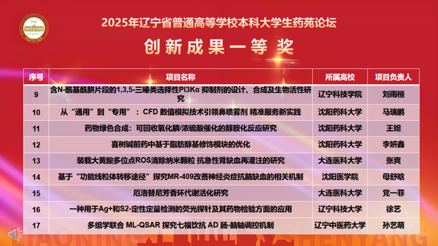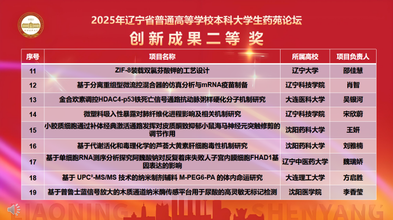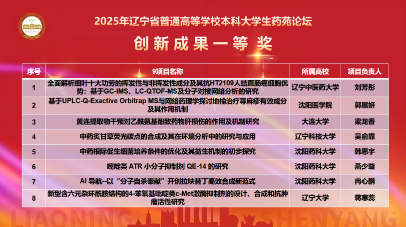 11月7日,由辽宁省教育厅主办、best365足球官网承办的“2025年辽宁省普通高等学校本科大学生药苑论坛”在南校区图书馆国为报告厅举行。本次论坛吸引了来自大连理工大学、辽宁大学、大连医科大学等15所兄弟院校的500余名师生参赛,充分彰显了辽宁药学教育领域的蓬勃活力与深厚底蕴。山东大学、大连理工大学、辽宁大学、大连医科大学、best365足球官网、辽宁中医药大学、沈阳医学院的专家出席论坛并对参赛项目进行现场评审。