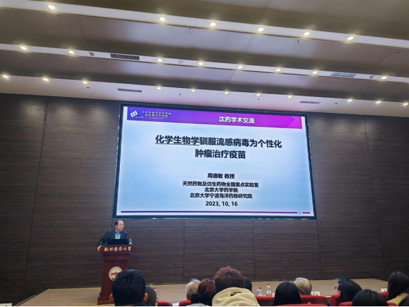 周德敏教授作了题为“化学生物学驯服流感病毒为个性化肿瘤治疗疫苗”的学术报告,介绍了课题组借助化学生物学和合成生物学知识,研发出具有鲜明首创特征的抗病毒、抗肿瘤疫苗和药物。该研究成就了病毒“以毒攻毒”的新成药模式和生物药物仿生的变革性策略,展现出化学生物学在生物药“源于自然、优于自然”走向的不可替代作用。