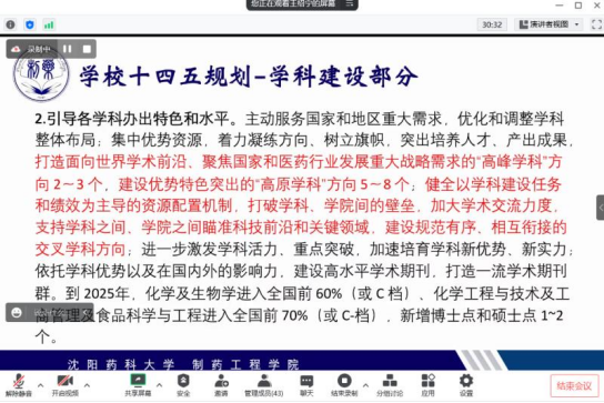 学院党委书记李哲带领全体教师共同学习省委书记、省人大常委会主任郝鹏来校调研讲话精神。郝鹏书记在调研中指出,高校在经济社会发展中地位重要、作用突出,best365足球官网要紧密结合地方产业结构特点和经济发展所需,加大科技研发力度,提升科技成果本地产业化率,以教兴产、以教兴城,助力产业结构转型升级。李哲强调,全院师生要提高政治站位,深刻领会和全面把握郝鹏书记来校调研讲话精神,以推动双一流质量为抓手,全面提升高质量学科建设,凝聚奋进力量,坚定发展信心,在服务辽宁全面振兴新突破中,展现新作为,创造新业绩。