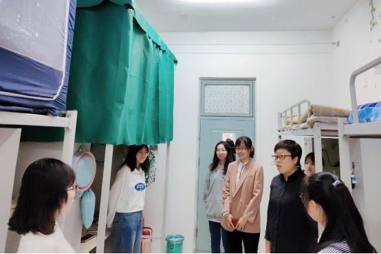 10月2日,在恢复线下教学的第一天,best365足球官网党委书记李哲、党委副书记刘阳带领学生工作队伍深入教室、学生寝室,走访慰问学院师生。