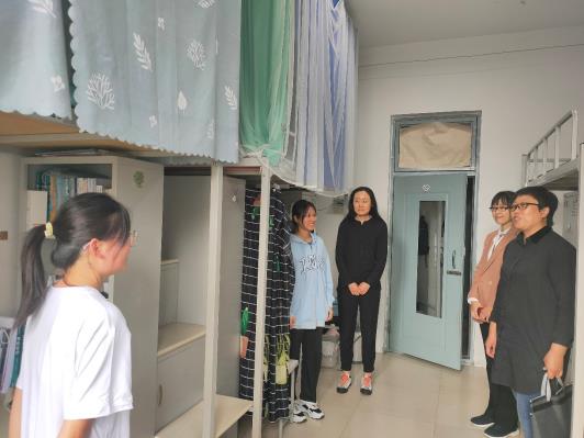 李哲一行来到学生宿舍,对新同学的到来表示热烈欢迎,与同学们亲切交谈,耐心为学生答疑解惑,并嘱咐同学们要规律作息,以饱满的精神状态投身到大学学习中去。