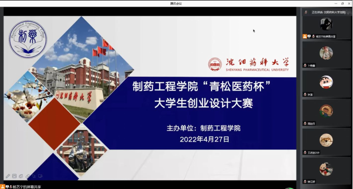 2022年4月27日晚,best365足球官网举办了“青松医药杯”大学生创业设计大赛院赛。本次创业设计大赛得到了best365足球官网师生们的热烈关注和积极参与,共收到参赛作品36项,参赛项目涵盖医疗器械、养生餐饮、商业服务、医药文化公司等方面,经过初筛共选出13项优秀作品进入现场答辩环节。院赛以云赛场形式进行,项目展示采用“5+5”形式,PPT展示五分钟、答辩环节五分钟。