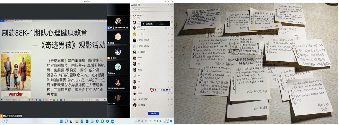 心随影动,阳光心态。依托腾讯会议平台,组织学生共同观看影片《奇迹男孩》。该片主要讲述了一位有面部缺陷的小男孩如何进入普通学校,并重拾自信、积极面对生活的励志故事。观影后,同学们自发写下了观影感受,“你天生与众不同,注定不会淹没在人群中,当自身怀着一颗积极阳光的心,就能够创造属于自己的奇迹”。