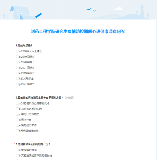 主动作为,倾情守护。发放《best365足球官网研究生疫情防控期间心理健康调查问卷》,深入了解疫情影响下研究生的心理状况和心理需求,为学院更有针对性地开展相关工作提供依据。修订学院《学生突发事件预防及应急处置预案》,进一步健全纵向危机应对联动机制,提高快速反应和应急处理能力。关口前移,完善预警机制,多渠道了解学生思想状况,加强重点对象精准帮扶,为学生健康成长保驾护航。