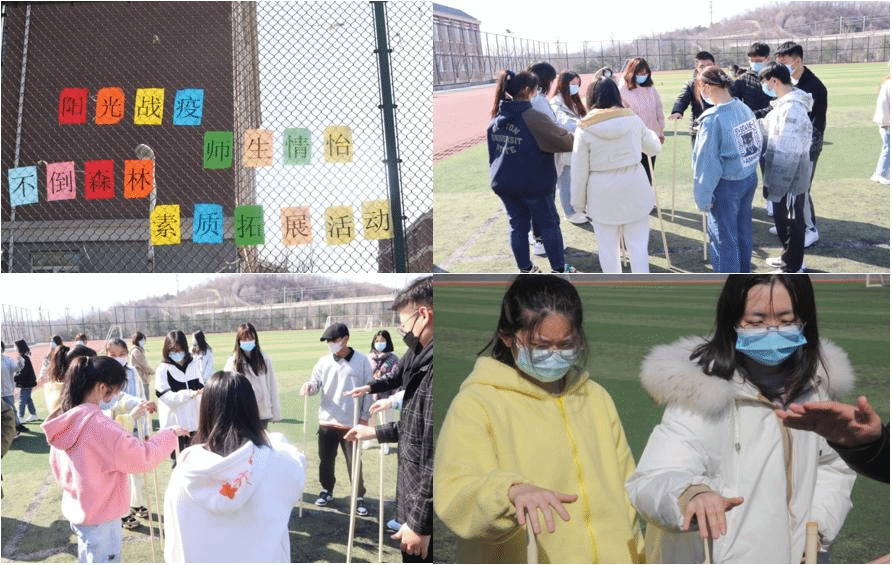 师生互动,快乐陪伴。学院党委副书记刘阳带领驻校学生工作队伍与其联系的学生班级开展了“阳光战疫,师生情怡——‘不倒森林’”素质拓展活动。通过参与活动,缓解了学生们的紧张和焦虑情绪,让学生切身体验到了团队协作、互相信任和彼此支持的重要性,培养了乐观积极的心态和勇于挑战的精神。