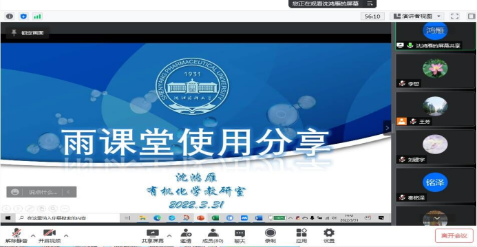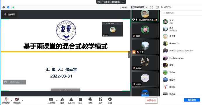 为帮助学院教师更加全面掌握线上教学软件的使用方法,提高线上教学效果,保障疫情期间本科教学质量,3月31日,best365足球官网举办雨课堂使用线上培训会,本次培训会特请药物化学教研室侯云雷老师和有机化学教研室沈鸿雁老师进行经验分享,院领导班子成员、学院教师参加了会议,会议由副院长郭永学主持。
