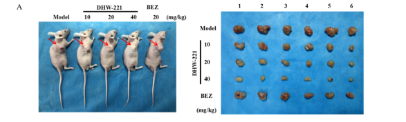 A Photographs of tumor-burdened nude mice and resected tumor samples.