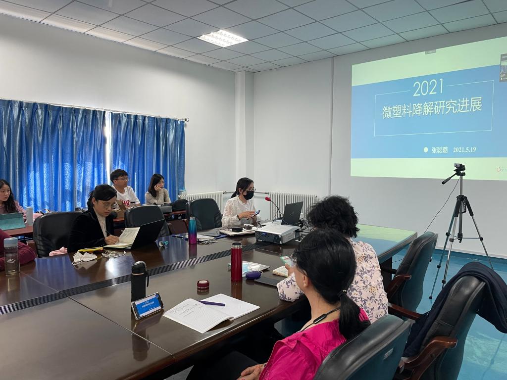座谈会上,首先进行了科研成果交流。陈启晴研究员科研团队成员介绍了微塑料的生物毒性研究进展,侯晓虹教授的博士生李琳介绍了基于MOFs材料的样品前处理研究进展,张聪璐介绍了微塑料降解的研究进展及存在问题,王婷介绍了毒理学评价在污染控制中的需求等。在熟悉双方科研方向和研究进展的基础上,陈启晴研究员与与会教师就科研需求、科研合作方向及合作途径、联合培养研究生、兼职导师等方面开展了深入交流,并初步达成共识。