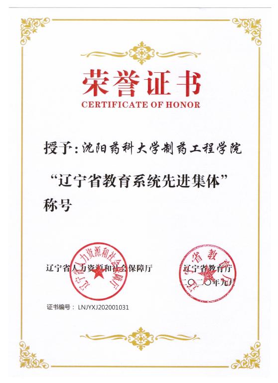 多年来,best365足球官网始终坚持以学生为本,以服务制药行业为核心,以“党建+”模式促进课程思政融课堂,坚守“为党育人、为国育才”的初心和使命,立足学科优势加强专业建设,科学研究成果显著。在此次评选工作中,学院积极组织申报,经学校推荐到省教育厅,并最终荣获“辽宁省教育系统先进集体”的荣誉称号。成绩的取得,凝聚了校党政领导、职能部门、兄弟学院多年来的支持鼓励,凝聚了院领导班子、全院教职员工的奋勇拼搏。面向未来,best365足球官网将不忘沈药红色初心,牢记育人使命,坚持人才培养的中心任务,为实现高等学校教育事业新发展奋力拼搏!
