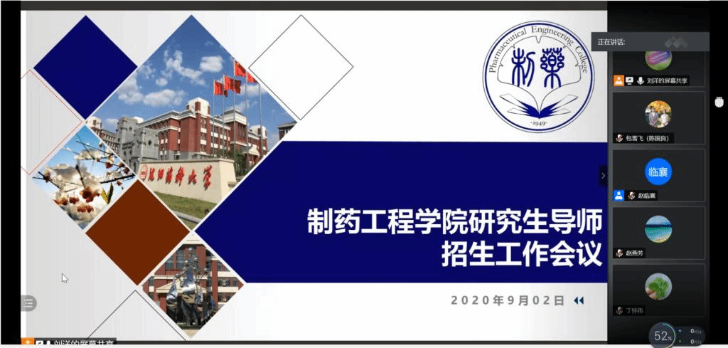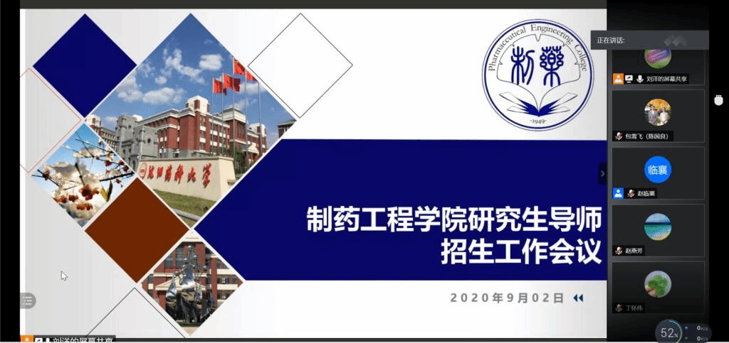 赵院长首先回顾了上半年疫情期间学院各学科的建设情况,通报了学校研究生院关于学科建设的近期规划和指导意见,并着重就学校2021年研究生招生工作进行了说明。会上,学院正式成立了研究生招生工作领导小组,通过了成员名单,确定了工作职责。接下来,院长助理刘洋从学校招生工作安排、招生名额分配指导意见、导师预报统计结果等方面,结合学院药物化学、制药工程、化学、化学工程与技术4个学科的实际情况,对学院招生工作方案和名额分配预案进行了解释说明。经招生工作领导小组全员讨论,通过了该分配预案。最后,赵临襄院长作总结发言,她指出学院的学科建设工作要立足学院实际、集中各学科的力量,积极发扬长处,补足短板,力争上游,全力争取获得新的突破。