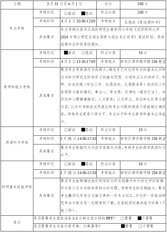 复试内容包括专业考核和综合素质考核,其中专业考核满分200分,综合素质考核满分100分,其中综合素质考核包含、英语听力考核、科研基本技能考核和素质和能力考核,具体内容详见下表。