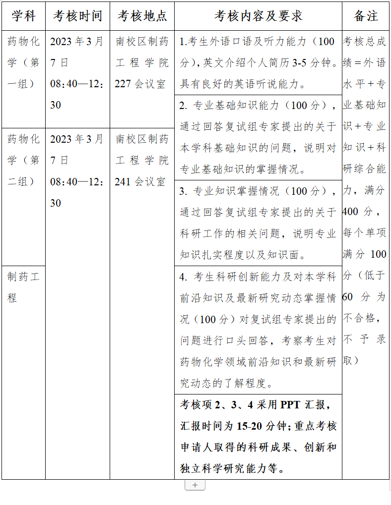 考核内容包括外语水平、专业基础知识、专业知识和科研综合能力四个模块,每个单项满分为100分,成绩低于60分为考核不合格不予录取。