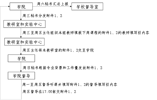 1.每周五下午17:00前提交《best365足球官网在线教学质量评价表》(见附件1)和《best365足球官网在线教学运行情况一览表》(见附件2)。