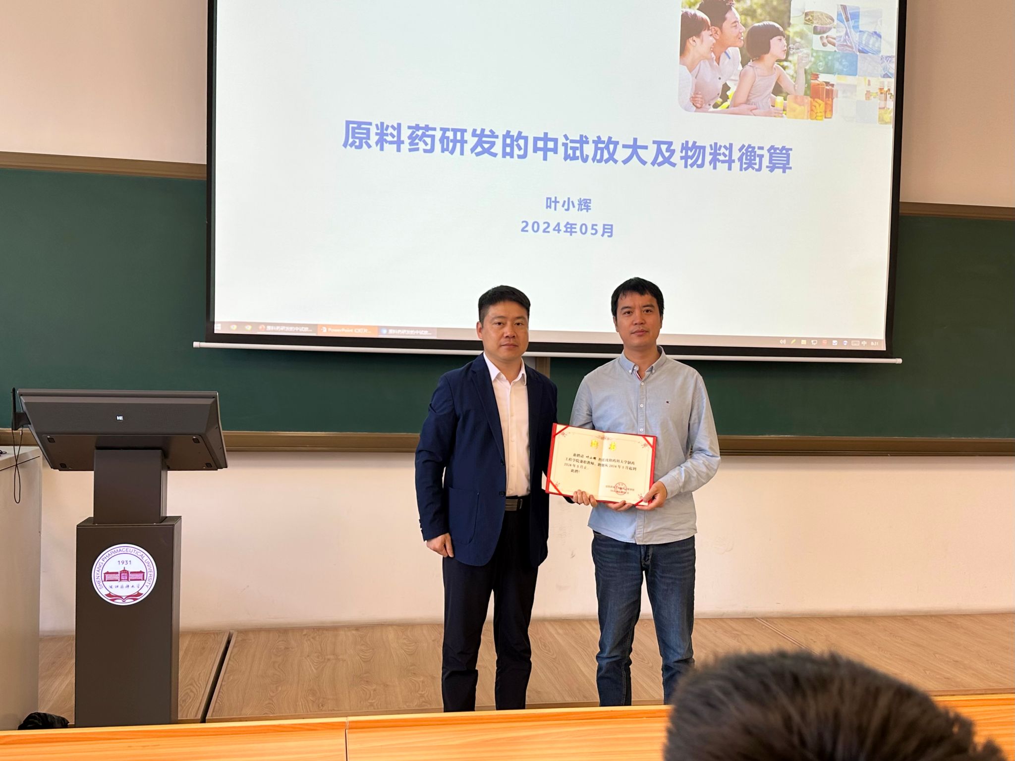 5月28日,best365足球官网聘请上海医药集团(本溪)北方药业有限公司高级工程师叶小辉为兼职教师,并给88K制药工程专业的同学们进行《化学制药工艺学》课程授课,学院院长刘洋、副院长刘丹共同聆听了课程。