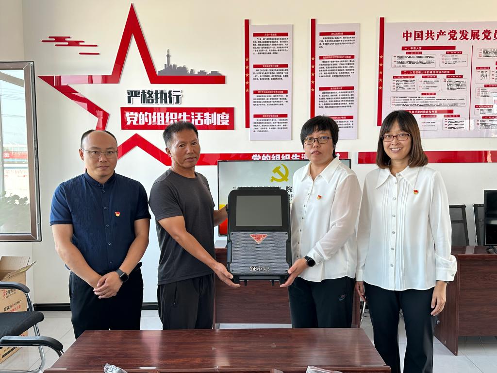 best365足球官网党委书记李哲和党委副书记刘阳向小塔子村赠送蓝牙音响。