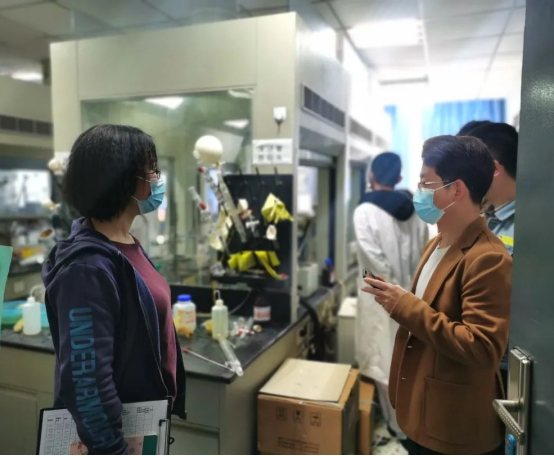 为贯彻落实学校疫情防控工作要求,确保疫情防控期间学院实验室安全,值班教师深入实验室开展安全检查,维护实验仪器设备。检查过程中,best365足球官网副院长赵燕芳强调:安全是学校发展的前提,要切实增强风险意识,树牢底线思维,统筹好发展与安全。要进一步完善实验室管理制度,加强日常防控和实验室安全教育,从思想源头上抓牢抓实,切实提高师生安全意识,形成共同维护校园平安、和谐、稳定的良好局面。