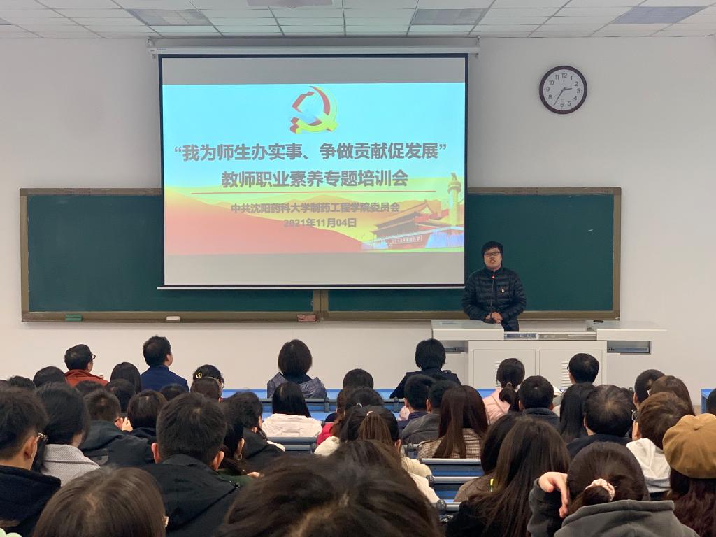 为提升best365足球官网教师队伍的综合职业素养,提高教师教书育人水平,让学院师生切实感受到开展党史学习教育以来教师队伍的新变化,11月4日,best365足球官网党委在南校区播馨楼104教室召开“我为师生办实事、争做贡献促发展”提升教师职业素养专题培训会,邀请辽宁省教学名师、药物化学教研室郭春教授作专题报告。院领导班子、中青年教师及研究生助教参加了会议,报告会由院党委书记李哲主持。