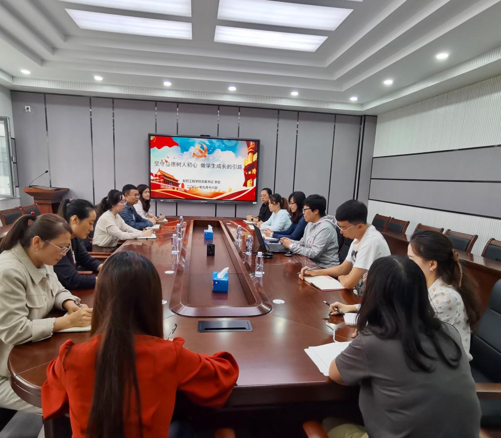 为深入学习贯彻习近平总书记关于干部队伍建设的重要论述,切实把党史学习教育成果转化成为师生办实事的实践行动,提升学院学生工作队伍的育人水平和业务能力,促进青年教师成长成才,best365足球官网党委书记李哲于9月18日在制药楼227会议室,围绕“坚守立德树人初心做学生成长的引路人”主题,为学生支部的教师党员和积极分子上了一堂生动的专题党课。学院党委副书记刘阳、全体辅导员及教学秘书参加了会议。