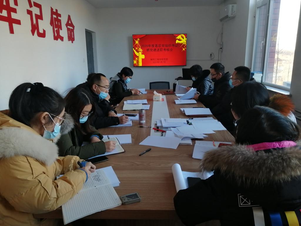 为学习贯彻习近平新时代中国特色社会主义思想和党的十九大精神,贯彻落实中央、省委和省委教育工委关于基层党建工作部署要求,提高基层党建工作质量,结合学校相关工作要求, 2021年1月7日下午best365足球官网党委于制药楼241会议室召开了2020年度党支部书记抓党建述职评议考核会。学院领导、系主任、党支部书记、群众代表参加了评议考核会,会议由学院党委书记李哲主持。